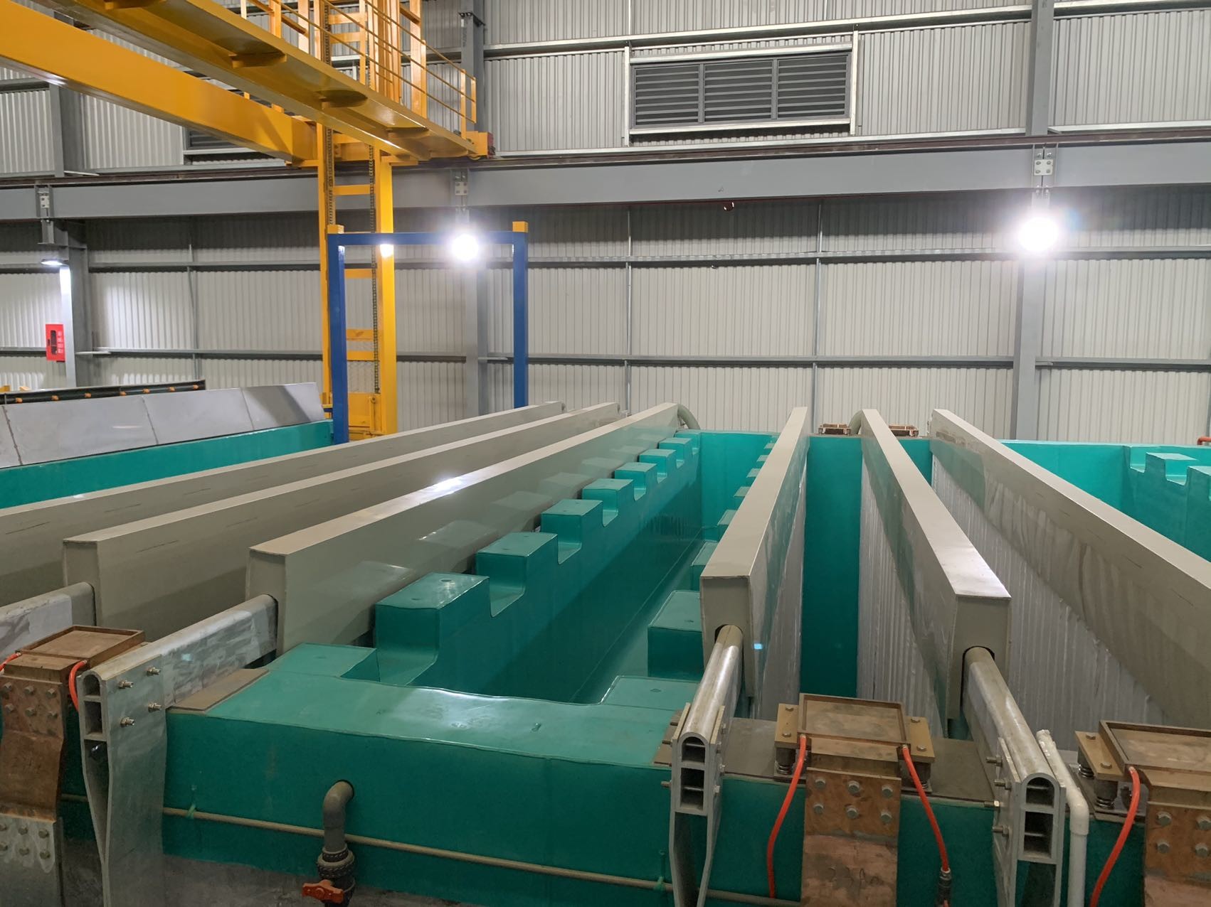2) مخزن کلور:100m2/tank×70A/m2÷0.9 = 7777A/tank