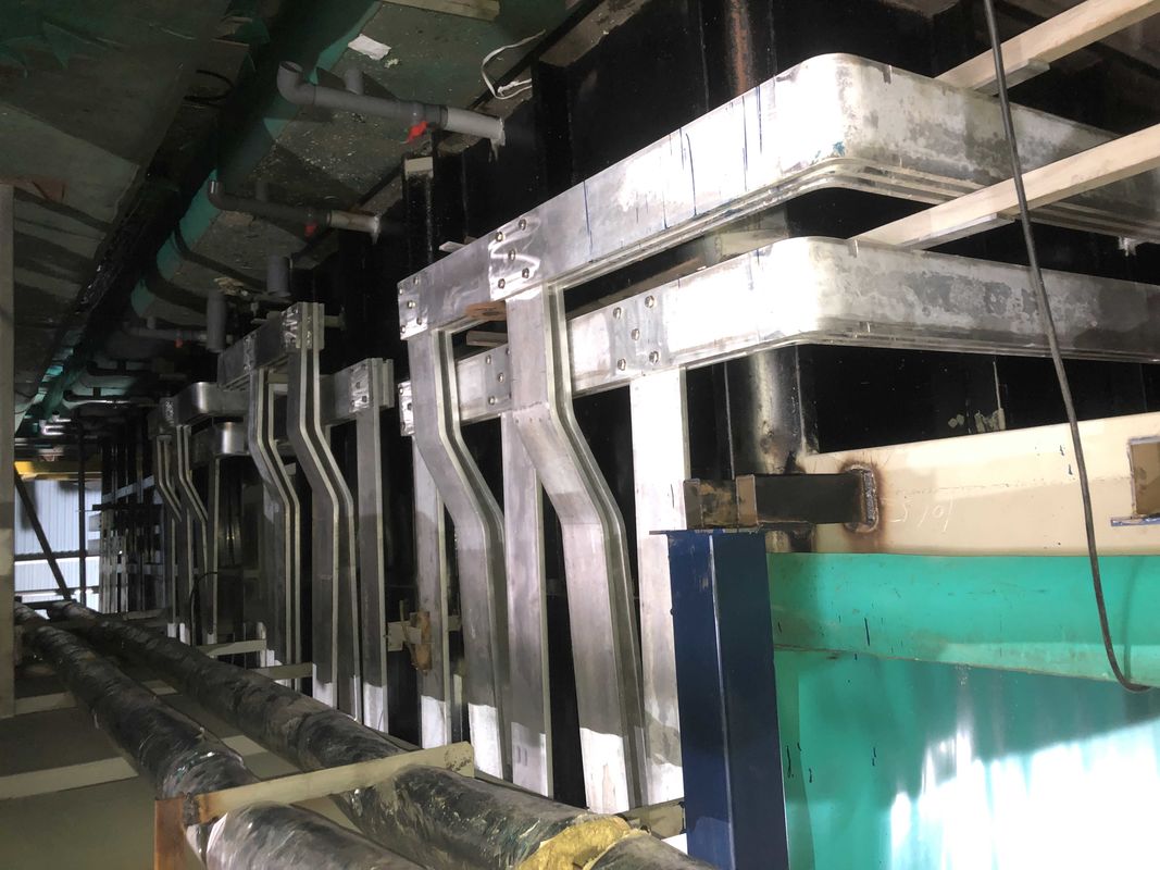 2) مخزن کلور:100m2/tank×70A/m2÷0.9 = 7777A/tank